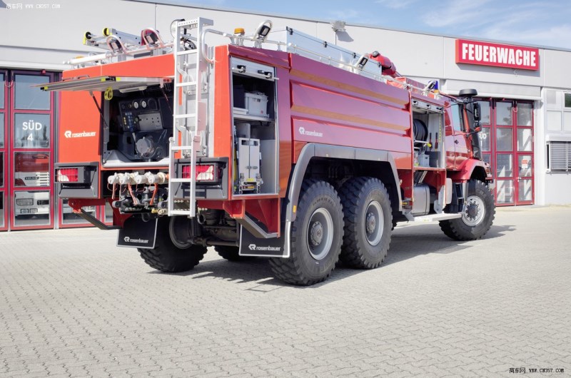 30米高度的奔馳云梯消防車是用采德國云梯車電器、液壓系統及元件研制成功的世界上先進的消防登高設備。該車是全回轉、直伸梯,車上裝有plc電腦控制裝備,梯架頂端的載人平臺可隨梯架變幅運動,平臺上設有通訊和水炮滅火系統。